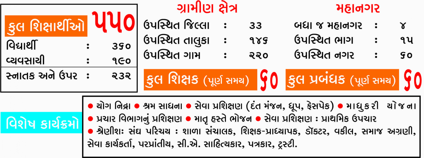 આ વર્ગમાં તૈયાર થયેલા કાર્યકર્તાઓ દ્વારા નવા નવા આયામો દ્વારા નવા નવા કાર્યો થાય છે અને તેમનાં દ્વારા સમાજ જીવનમાં ચેતનાનો સંચાર થાય છે.